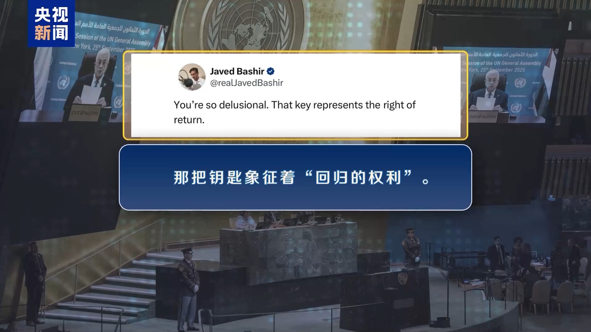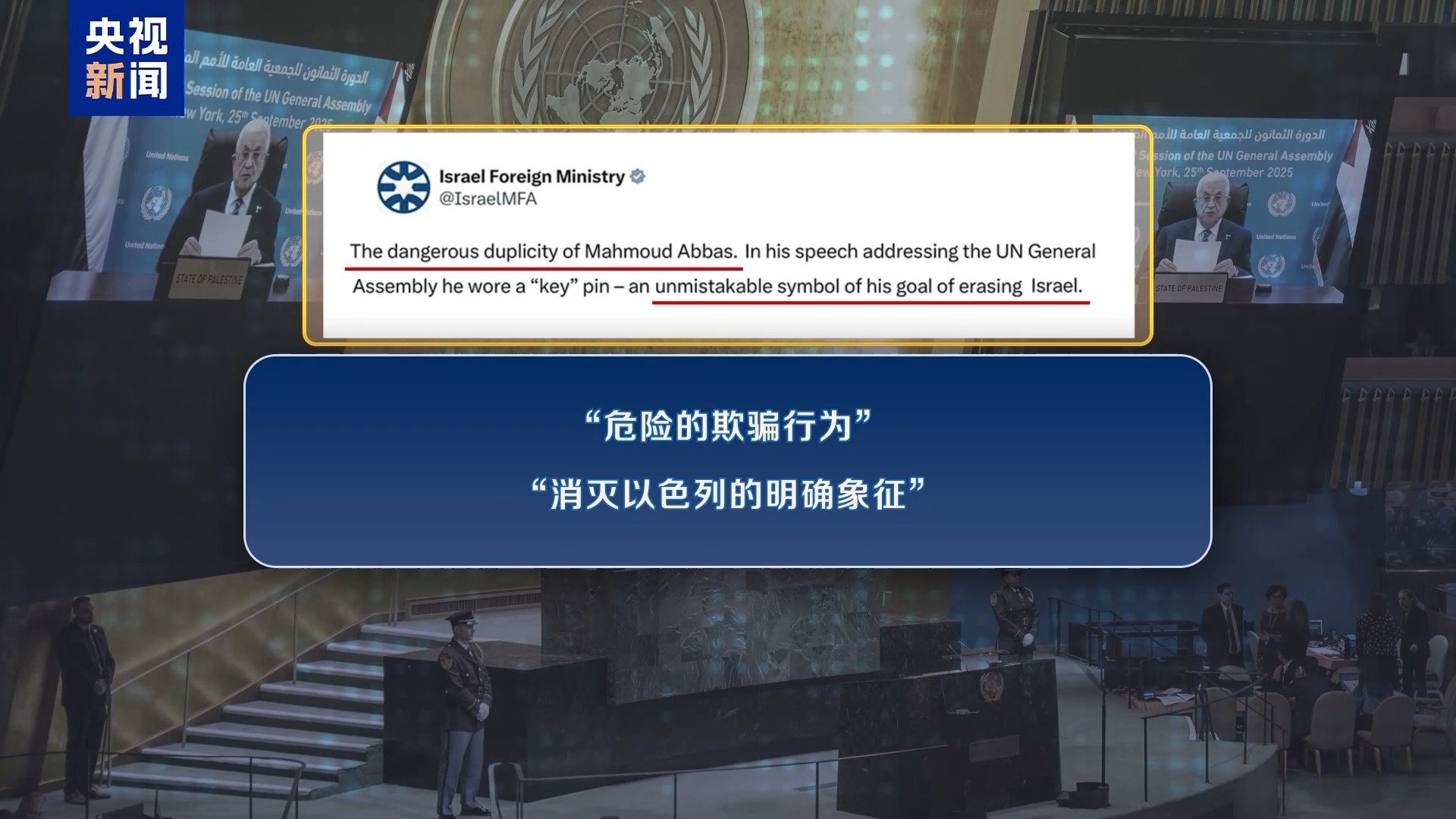 今年顺市配资,迫于美方阻挠,巴勒斯坦总统阿巴斯只能通过视频方式参加联大一般性辩论等活动。出人意料的是,阿巴斯发言时佩戴的一枚“钥匙”徽章成了以色列的“眼中钉”。