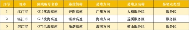 省公安厅交管局经广东省公安厅交通管理局与省交通运输厅联合研判,今年我省中秋国庆假期里较为拥堵的路段、收费站、车流较饱和服务区,以及充电设施利用率高的服务区有以下这些: