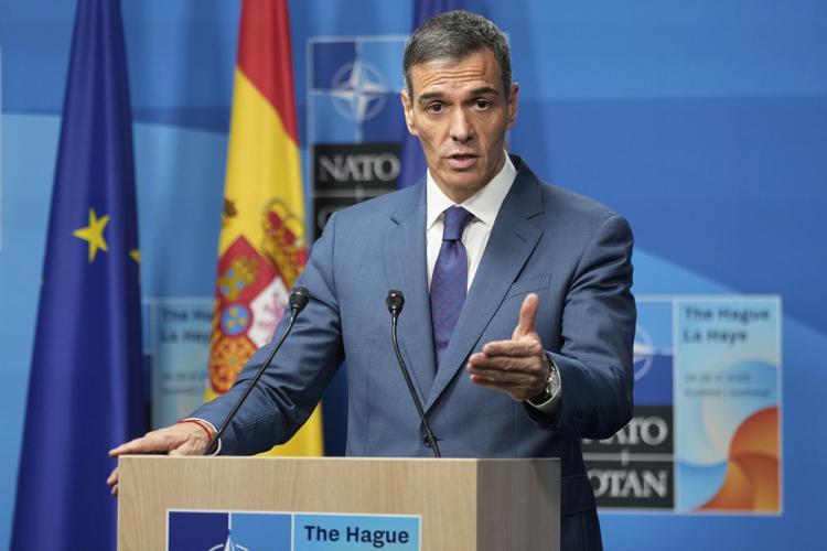 6月25日,荷兰海牙,桑切斯在新闻发布会上发表讲话。来源:视觉中国