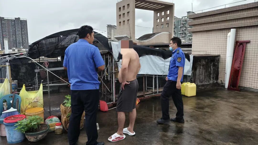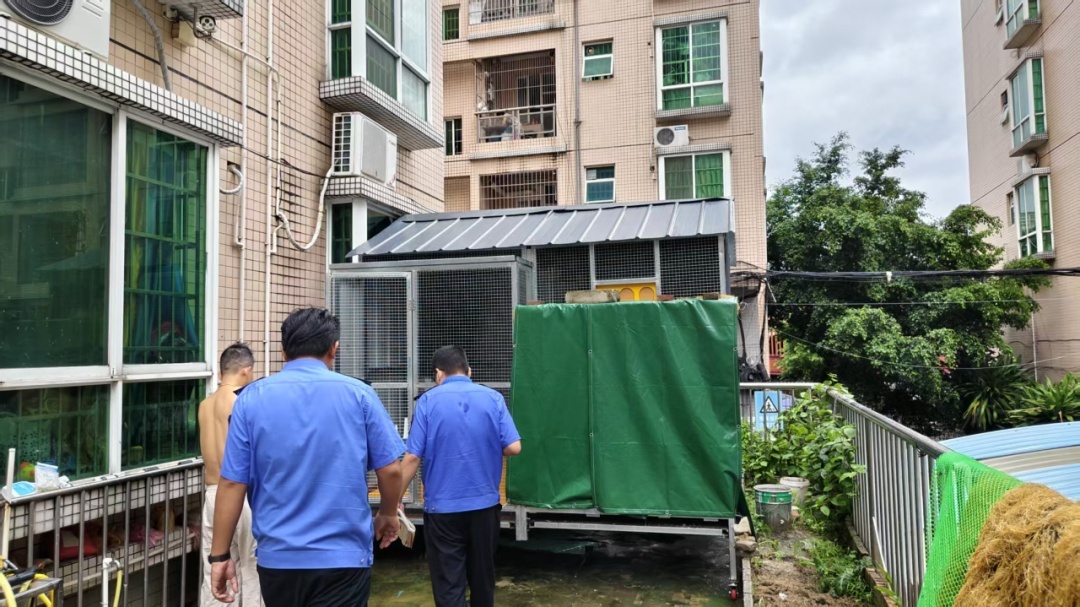 2025年10月4日,接东城街道群众反映,商业大道翡翠雅苑小区存在居民于楼顶饲养家禽的情况。经执法人员现场核实,发现该处确有饲养家禽9只。经询问,当事人称系为中秋节送礼所需,并于9月20日开始暂养,承诺将于10月6日(中秋节)前自行清理完毕。